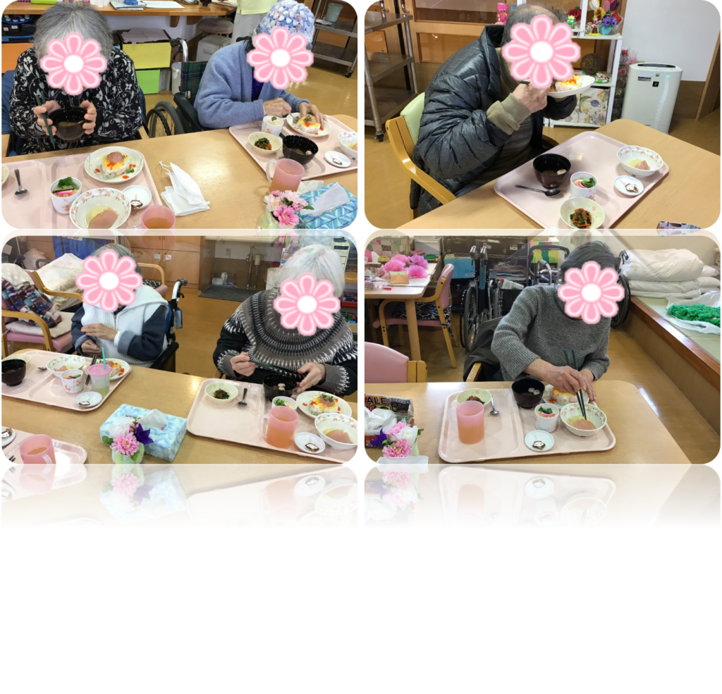 3月3日当日は、雛祭りのイベント食を召し上がっていただきました。見た目も鮮やか、食欲をそそります!