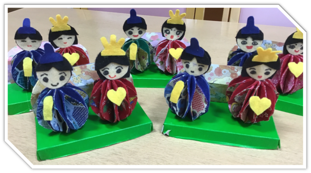 雛祭りにむけて、雛飾りを製作しました。それぞれ違った色々な表情の、素敵な雛人形になりました✨